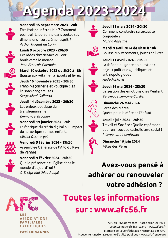 Retrouvez le programme des conférences de l’AFC du Pays de Vannes pour l’année scolaire 2023-2024.