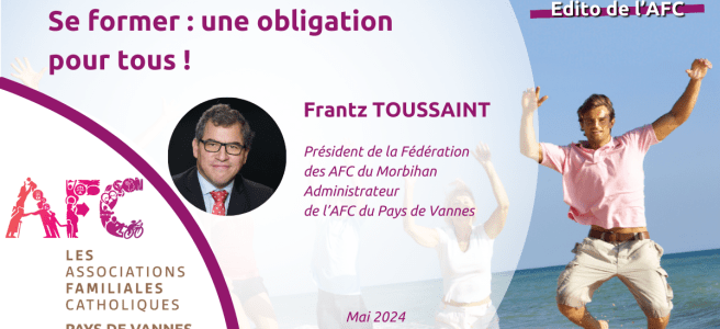 C’est pour cela que votre AFC s’engage en vous proposant des cycles de conférences, en relayant les différentes activités qui rendent témoignage à la Vérité et en vous proposant aussi des formations à l’action politique afin d’exercer ensemble notre appel à dialoguer avec les politiques, avec la société, avec la culture, avec le monde.