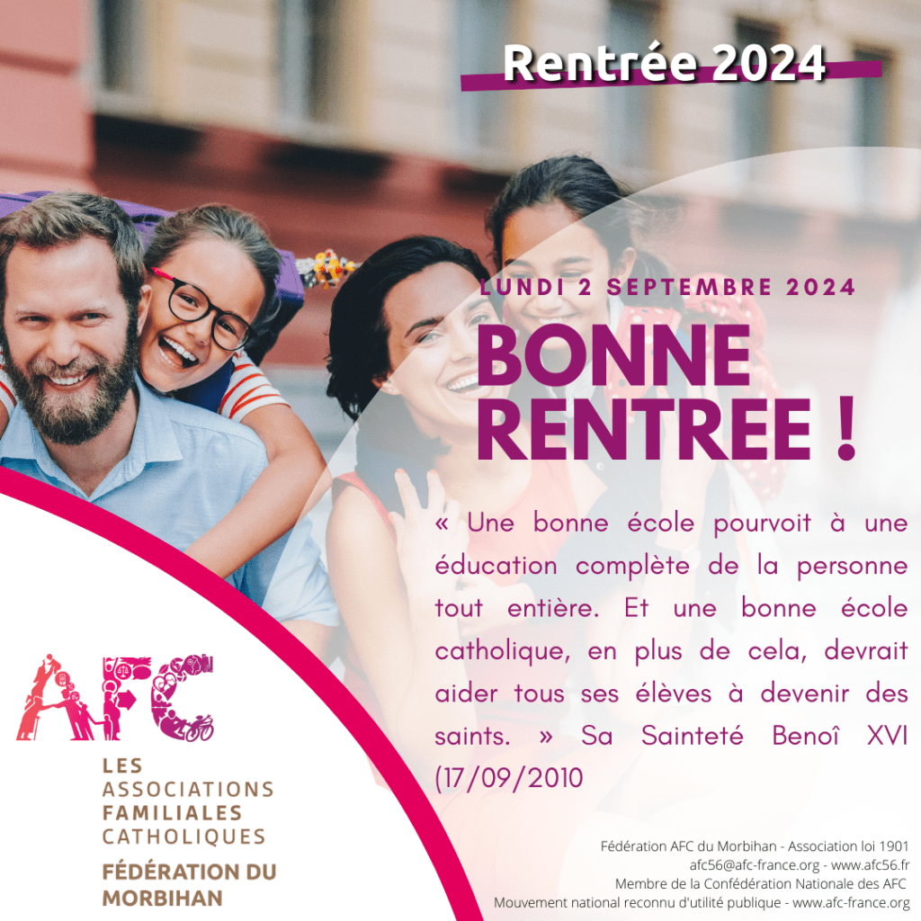 Bonne rentrée 2024 À la Une ~ Frantz TOUSSAINT Les AFC du Morbihan souhaitent à toutes les familles une bonne rentrée 2024 ! Partager : Cliquez pour partager sur Facebook(ouvre dans une nouvelle fenêtre) Facebook Cliquer pour partager sur X(ouvre dans une nouvelle fenêtre) X Cliquez pour partager sur LinkedIn(ouvre dans une nouvelle fenêtre) LinkedIn Cliquez pour partager sur WhatsApp(ouvre dans une nouvelle fenêtre) WhatsApp Cliquer pour envoyer un lien par e-mail à un ami(ouvre dans une nouvelle fenêtre) E-mail Cliquer pour imprimer(ouvre dans une nouvelle fenêtre) Imprimer