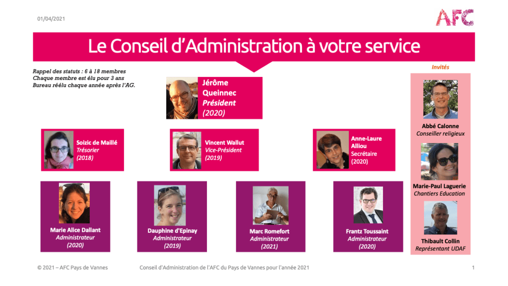 L’équipe en charge le conseil d’administration depuis mars 2021 :